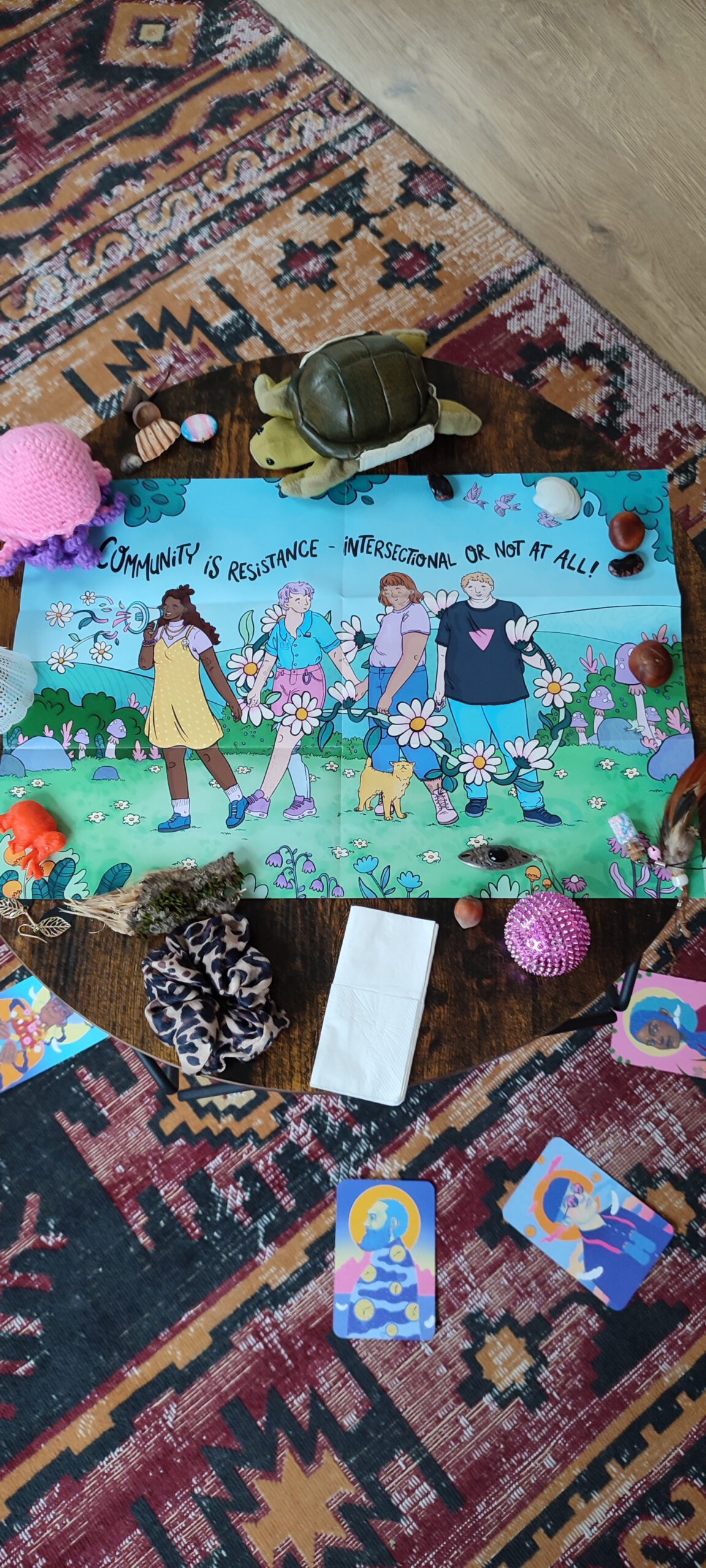 Meine Arbeit ist geprägt von meiner eigenen Positionierung – ostdeutsch, klassismuserfahren, weiß, goj, transfeminin, ohne sichtbare körperliche Behinderungen, neurokomplex – und von den Bewegungen, Gruppen und Menschen, von denen ich seit vielen Jahren lerne.